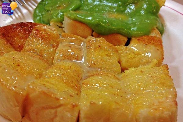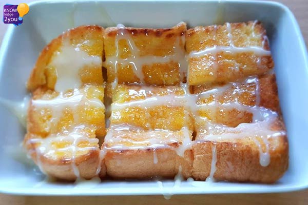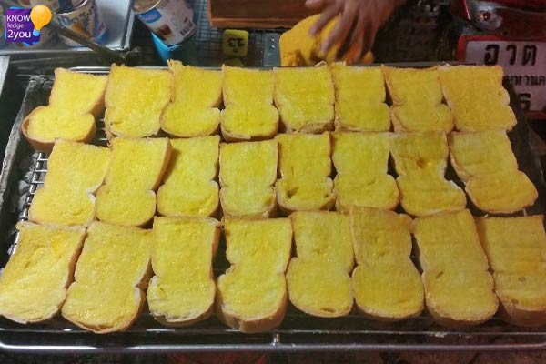 ขนมปังปิ้งราดนม มีความกรอบหอมเนย